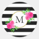 Sticker Rond Chic noir blanc rayé rose floral Monogramme