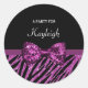 Sticker Rond Chic Purple Zebra Print FAUX Glitz Bow avec nom