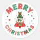 Sticker Rond Chic Red and Green Merry Christmas Tree Holiday