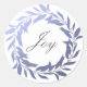 Sticker Rond Chic Script Joy Blue Foil Wreath Noël
