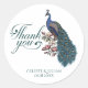 Ces stickers de Merci Peacock Turquoise Chic présentent un paon bleu et turquoise dessiné à la main et perché sur les branches de Magnolia en pleine floraison à l'encre noire et le titre "Merci" en élégant script turquoise. Personnalisez avec le nom et la date de la mariée et du marié en cliquant sur "Personnalisez ce modèle" sur la page du produit.