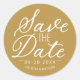 Sticker Rond Chic White Script Wedding Enregistrer La Date Gold