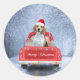 Sticker Rond Chien beagle en neige assis dans un camion de Noël