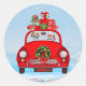 Sticker Rond Chien beagle En Voiture Avec Le Père Noël