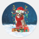 Sticker Rond Chien berger australien en neige cadeau de Noël