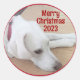 Sticker Rond Chien blanc mignon portant le collier rouge Noël
