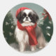 Sticker Rond Chien chinois japonais à Noël de neige