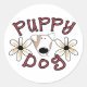 Sticker Rond Chien chiot à fleurs