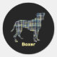 Boxer chien silhouette jaune, bleu et noir lignes de grille abstrait motif. Personnalisez avec votre nom ou votre nom et adresse de chien sur le devant. Le Boxer est une race de chien de taille moyenne à grande, aux cheveux courts, avec une coloration lisse et serrée; les couleurs sont faunes, brodées ou blanches, avec ou sans marques blanches