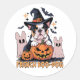 Sticker Rond Chien de Bot Français mignon Français Halloween Ch