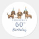 Autocollant rond classique pour chien Dachshund 60e anniversaire. Jolie aquarelle design pour l'amoureux des chiens. Facile à modifier le texte.