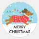 Sticker Rond Chien de Dachshund dans la neige Joyeux Noël