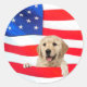 Sticker Rond Chien de Golden Retriever sur le drapeau