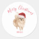 Sticker Rond Chien de Santa Hat Pomeranian Joyeux Noël