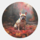 Sticker Rond Chien de taureau français en automne Leaves automn