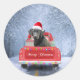 Sticker Rond Chien noir du Labrador en neige assis à Noël