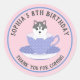 Qu'est-ce qui est mieux qu'une fête du thé pour enfants ? Une fête de chiot en tasse de thé pour enfants ! Ces autocollants de remerciement d'anniversaire illustrent un chiot sibérien Husky avec les yeux bleus dans une tasse de thé. Cette tasse de thé violet clair est dotée d'un motif blanc à points de polka, et le arrière - plan est rose pâle. Personnalisez ces autocollants de Merci Anniversaire de enfant avec votre propre message et le nom de votre enfant. Le message par défaut est "Sophia's 8th Birthday" (8ème anniversaire de Sophia) et "Merci pour venir" et est dans une police grise.