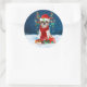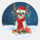 Sticker Rond Chien Shih Tzu en neige avec cadeaux de Noël