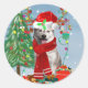 Sticker Rond Chien sibérien Husky à Noël de neige
