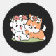 Sticker Rond Chiens de jeu avec Flower Crowns - Fun Spring Them