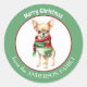 Sticker Rond Chihuahua Chig en rouge et vert Écharpe de Noël