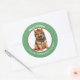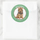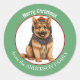 Une image d'un adorable petit chien chiot allemand Shepherd portant sa veste en cuir noir et son casquette d'hiver est au centre de ce mignon sticker Holiday. L'image est encadrée dans une bordure circulaire verte qui contient votre texte personnalisé en blanc. Idéal pour les cartes de Noël, la correspondance et les forfaits cadeaux.