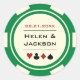 Se marier à Las Vegas ou dans une autre ville de casino amusante ? Ces autocollants vert et blanc brillant ajouteraient parfaitement à un ballotin, une enveloppe, un buffet de bonbons et plus encore. Personnalisez votre design avec vos noms en noir dans le centre, et une date mariage, merci, etc. en rouge sur le dessus. Coordination des produits disponibles. Aussi disponible en d'autres couleurs. Image reproduite avec l'aimable autorisation de Revi Devi