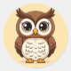 Sticker Rond Chouette adorable en caricature aux grands yeux
