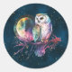 Sticker Rond Chouette arc-en-ciel mystique et Pleine lune céles