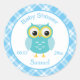 Sticker Rond Chouette bleue, à damiers Baby shower motif