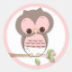 Sticker Rond Chouette de petite fille douce sur une branche