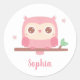 Sticker Rond Chouette Rose Cute Sur Branche, Filles Nom Personn