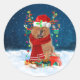 Sticker Rond Chow Chow Chien en neige avec cadeaux de Noël