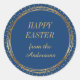 Vous cherchez un Elegant Custom Gold Pois Blue Christian Catholic Custom Family Happy Easter Sticker, ne cherchez pas plus loin. Ce simple stcker moderne Happy Pâques est créé avec un élégant motif pois d'or bleu. Au centre, il y a un cercle doré avec des salutations de Pâques. Vous pouvez personnaliser vos voeux de Pâques heureux et votre nom de famille. Découvrez plus avec notre Elégante Collection de Pâques de Résurrection Catholique Chrétienne. Joyeux Pâques !