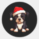 Sticker Rond Christmas Boston Terrier Dog Santa Hat Funny Xmas