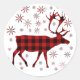 Sticker Rond Christmas Moose, Deer, elk, caribou, red plaids