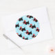 Adorable, black Scottie dogs with snowflakes makes a cute Christmas patterned sticker! They're wearing red Santa hats, cozy scarves and each dog is carrying a candy cane. The light blue background color is customizable. Choose your favorite color and change the size of the pattern if desired. Decorate Christmas gift wrapping, cards and more with this festive design that's perfect for Scottish Terrier lovers!