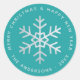 Sticker Rond Christmas Snowflake Teal Elegant Faux Silver Foil