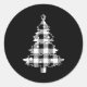 Sticker Rond Christmas Tree Black & White Buffalo Plaid Mer