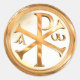 Le Chi Rho ou le Christogram est composé des deux premières lettres grecques du nom du Christ : K & R. Constantine le Grand l'a vu dans une vision avant la bataille du Pont Milvien, et aussi les mots latin "In hoc signo vinces" (dans ce signe, gagner). Il l'utilisa comme son blason et gagna. Après son immense victoire, il légalisa le christianisme dans tout l'Empire romain et mit fin à toutes les persécutions chrétiennes.
