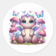 dino pastel chubby avec champignons et papillons Sticker rond classique