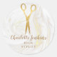 Un autocollant chic avec des ciseaux élégants sur un marbre tourbillonne arrière - plan avec une typographie or stylisée. Conçu par Thisisnotme©