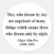 "Ceux qui rêvent le jour connaissent beaucoup de choses qui échappent à ceux qui ne rêvent que de nuit." - Edgar Allan Poe