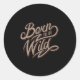 Sticker Rond Citation - Né pour être sauvage - sombre