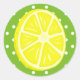 Une tranche de citron jaune sur un arrière - plan rétro vert et blanc.