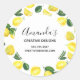 Autocollants d'affaires avec un mignon motif de citrons jaunes avec feuilles verts et tranches de citron fraîchement coupé. Un cercle blanc superposé avec votre texte à l'intérieur.
