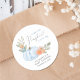 Un autocollant mignon et joli pour vos invitations à la douche pour bébé garçon, les faveurs de fête et les cartes de remerciement avec "A Sweet Little Citrouille is On His Way" écrit dans un mélange de typographie bleue moderne et script élégant avec un coeur gonflé, et un bouquet d'aquarelle d'un citrouille bleu pastel, floraux orange et verdure. Personnalisez le nom de la mère et la date de la douche dans une simple typographie moderne gris clair.