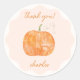 Un citrouille d'aquarelle élégant et mignon merci autocollant. Modifiez le nom pour personnaliser. Art original de Nic Squirrell.