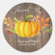 Mariage Favor Little Citrouille Merci Sticker rond avec arrière - plan en bois rustique. Pour plus de personnalisation, cliquez sur le bouton "Customiser" et utilisez notre outil de conception pour modifier ce modèle.