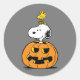 Célébrez Halloween et votre amour des cacahuètes avec ce design mignon avec Snoopy et Woodstock surgissant d'un citrouille.